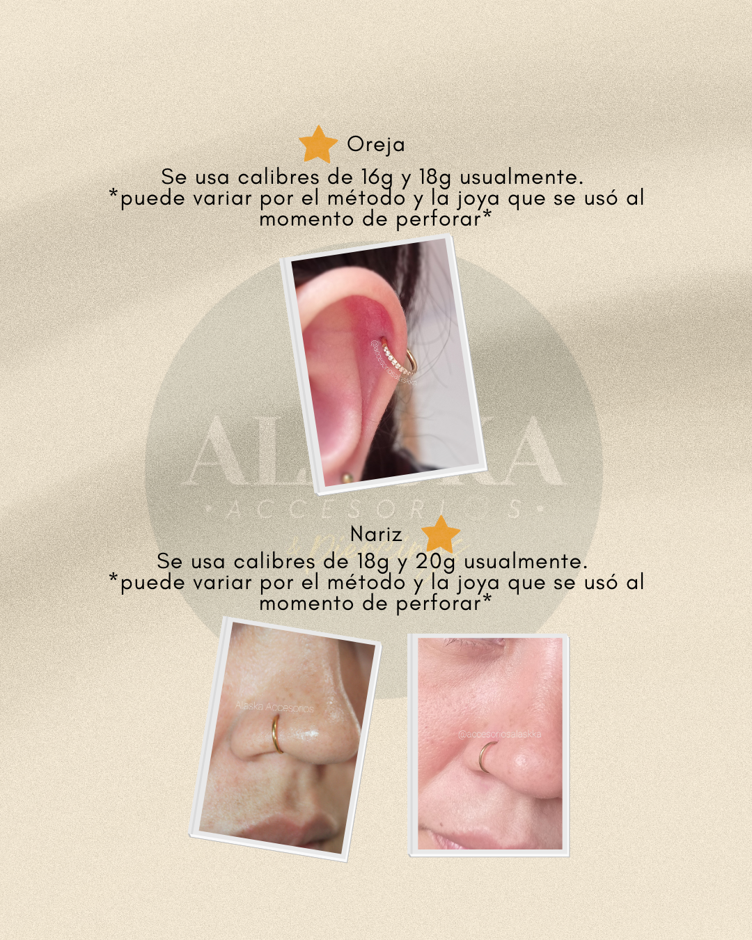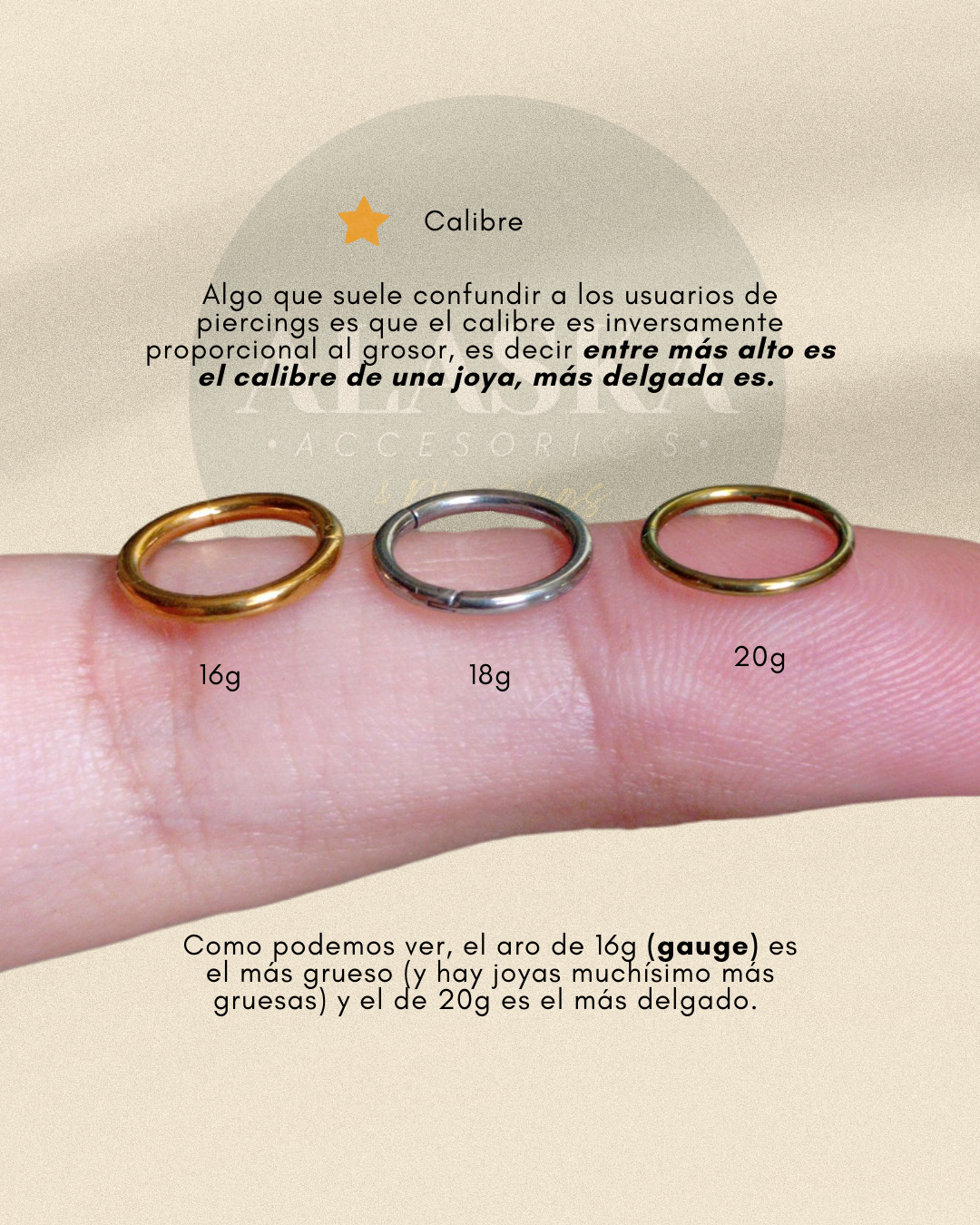 ~ Calibre: grosor de la pieza, tanto piercings rectos como aros.